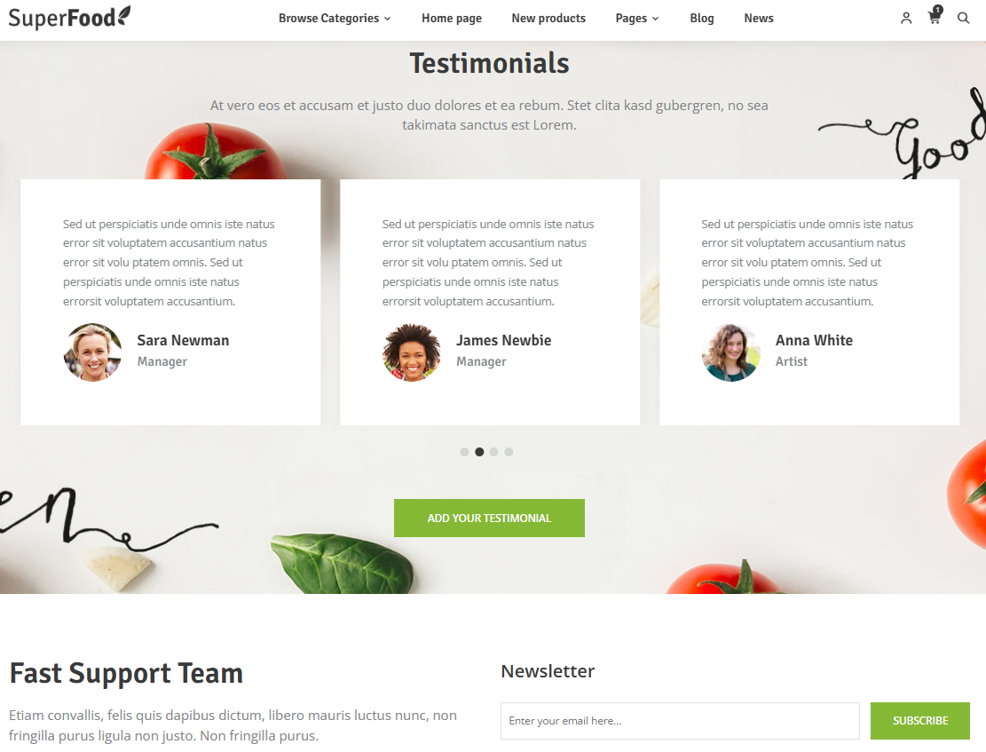 Introducing SuperFood, a premium nopCommerce theme designed specifically for organic food, grocery, health, and nutrition eCommerce stores. Fully compatible with nopCommerce 4.6, 4.7, 4.8, and 4.9, SuperFood combines a fresh, modern design with powerful features to deliver a smooth and engaging shopping experience.